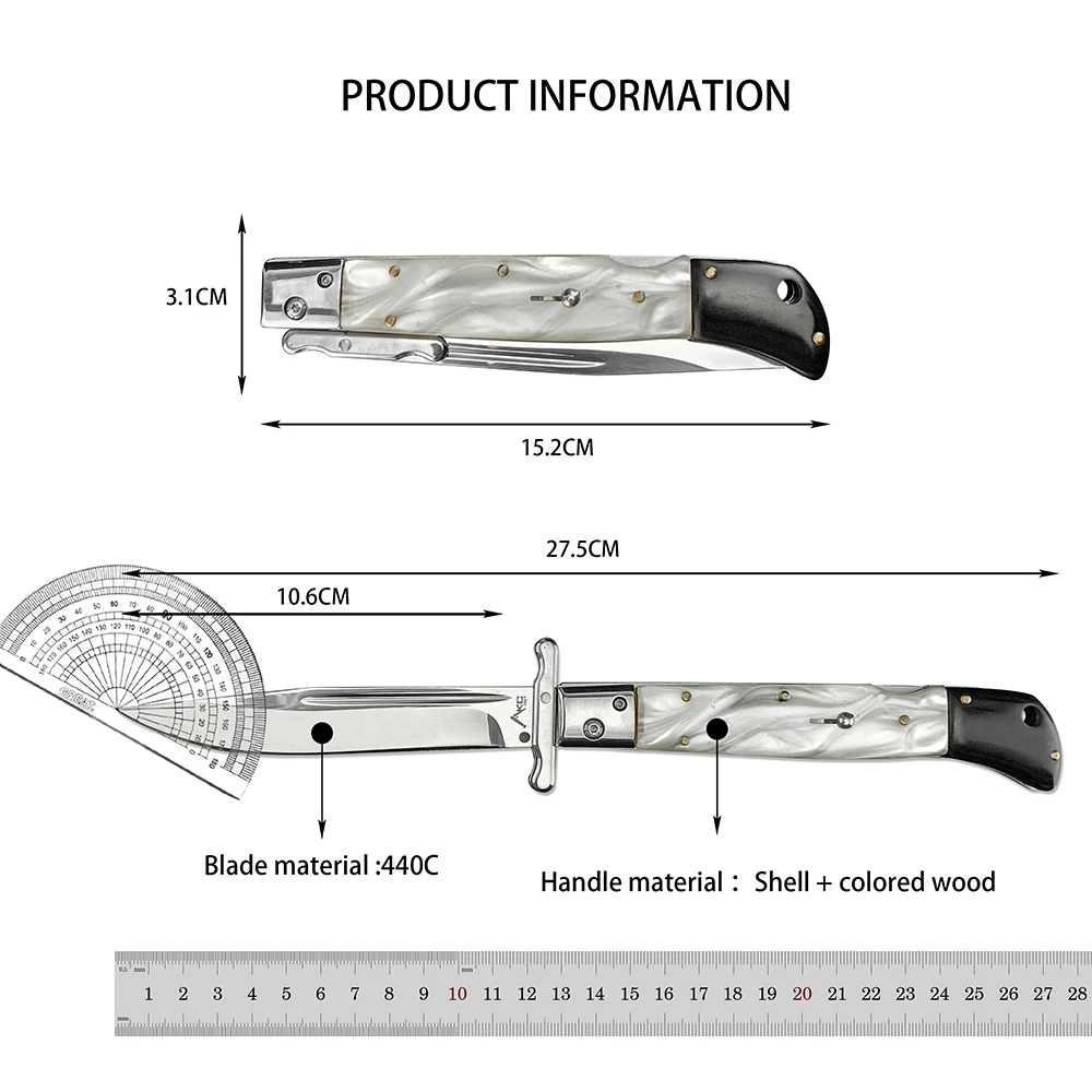 440C Stainless Steel Outdoor Folding Knife 4.1-Inch with Durable Shell Resin Handle