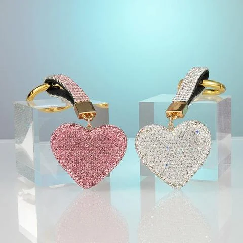 This gorgeous keychain is encrusted with top quality crystals, which glisten radiantly. Featuring a chic, fashionable design, it is sure to elevate the look of any purse or accessory.