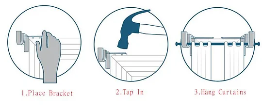 - The unique easy hanging curtain rod holders require just a hammer or mallet as they require no drilling or nails, are easily removed with no damage left afterward.